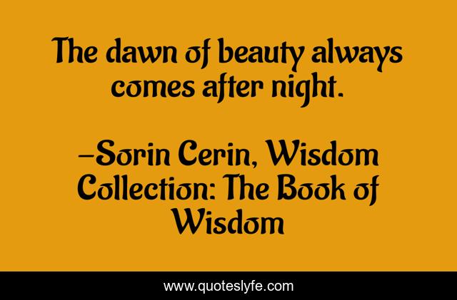 This page presents the quote "The dawn of beauty always comes after night.". Author of this quote is Sorin Cerin, Wisdom Collection: The Book of Wisdom. This quote is about world, dawn, night,.