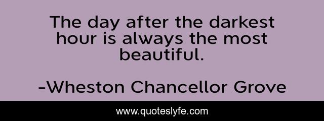 This page presents the quote "The day after the darkest hour is always the most beautiful.". Author of this quote is Wheston Chancellor Grove. This quote is about truth-inspirational, tragedy, romance-novels,.