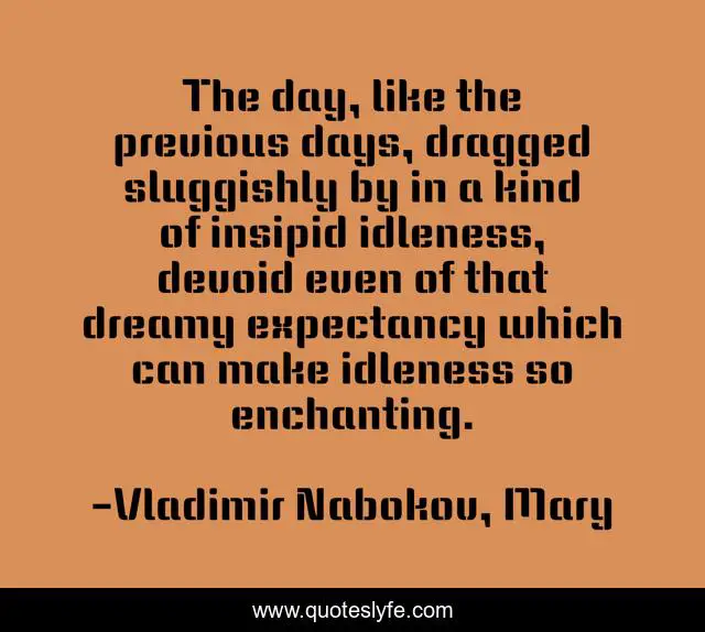 This page presents the quote "The day, like the previous days, dragged sluggishly by in a kind of insipid idleness, devoid even of that dreamy expectancy which can make idleness so enchanting.". Author of this quote is Vladimir Nabokov, Mary. This quote is about expectancy, life, idleness, boredom, repetition, dreams, hope,.