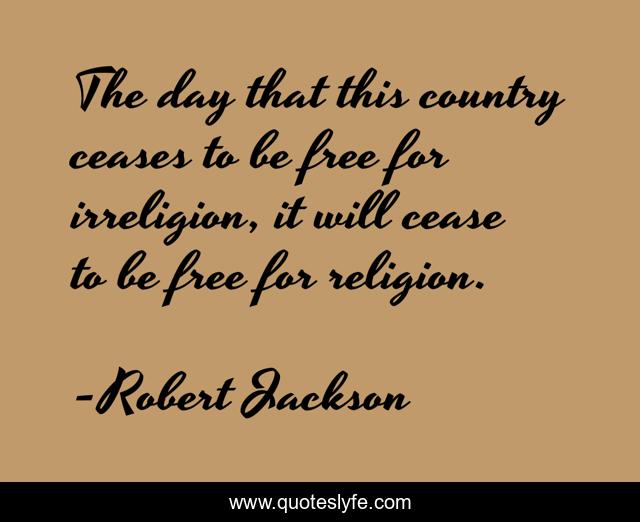 This page presents the quote "The day that this country ceases to be free for irreligion, it will cease to be free for religion.". Author of this quote is Robert Jackson. This quote is about country, day, free,.