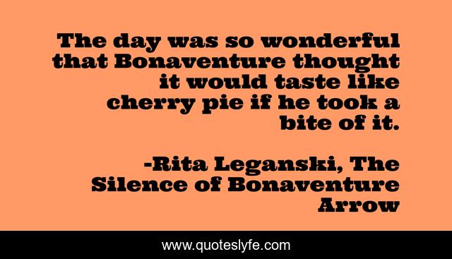 "Rita Leganski, The Silence of Bonaventure Arrow Quotes." Quoteslyfe.com, 2025. Mon. 08 Dec. 2025. <https://www.quoteslyfe.com/quote/The-day-was-so-wonderful-that-Bonaventure-244924>.