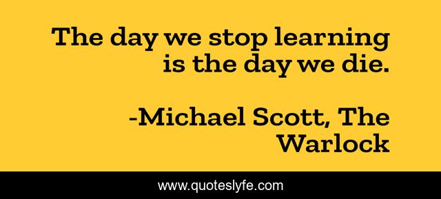 This page presents the quote "The day we stop learning is the day we die.". Author of this quote is Michael Scott, The Warlock. This quote is about dark, foreboding, inspirational, enthusiasm,.