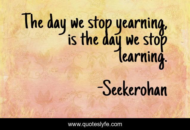 This page presents the quote "The day we stop yearning, is the day we stop learning.". Author of this quote is Seekerohan. This quote is about yearning, learning,.