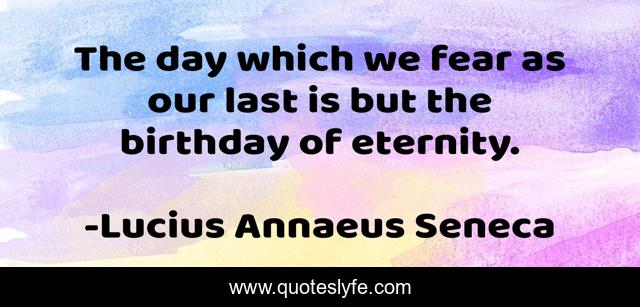 This page presents the quote "The day which we fear as our last is but the birthday of eternity.". Author of this quote is Lucius Annaeus Seneca. This quote is about fear, birthday, day,.