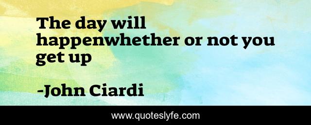 This page presents the quote "The day will happenwhether or not you get up". Author of this quote is John Ciardi. This quote is about happen, get-up, day,.