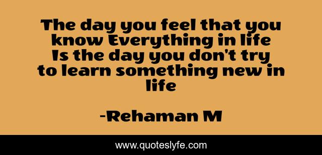 This page presents the quote "The day you feel that you know Everything in life Is the day you don't try to learn something new in life". Author of this quote is Rehaman M. .