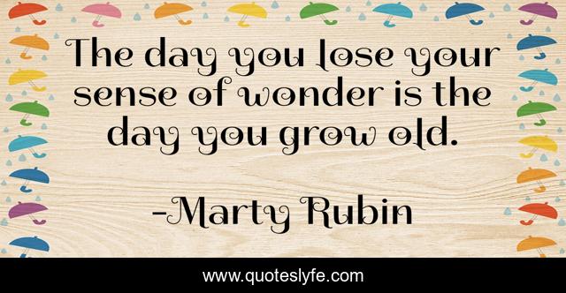 This page presents the quote "The day you lose your sense of wonder is the day you grow old.". Author of this quote is Marty Rubin. This quote is about age, growing-old, wonder,.