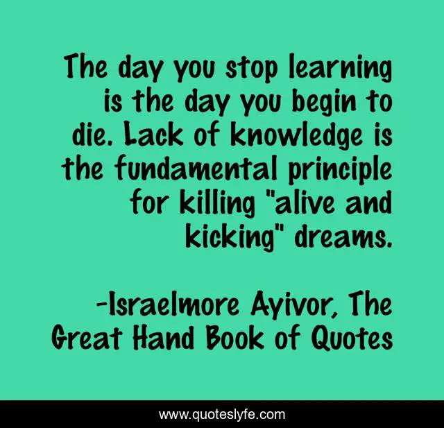 The day you stop learning is the day you begin to die. Lack of knowledge is the fundamental principle for killing "alive and kicking" dreams.