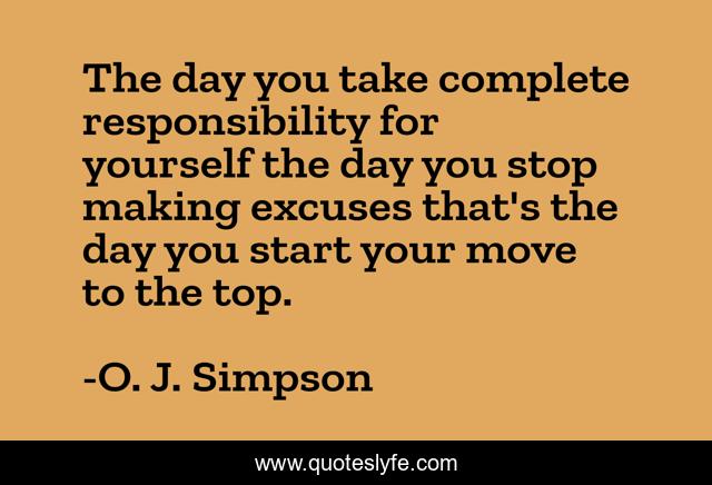 This page presents the quote "The day you take complete responsibility for yourself the day you stop making excuses that's the day you start your move to the top.". Author of this quote is O. J. Simpson. This quote is about self, reliance,.