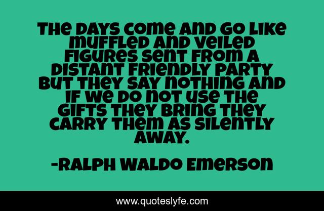 This page presents the quote "The days come and go like muffled and veiled figures sent from a distant friendly party but they say nothing and if we do not use the gifts they bring they carry them as silently away.". Author of this quote is Ralph Waldo Emerson. This quote is about transience, change,.