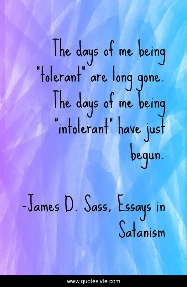 "James D. Sass, Essays in Satanism Quotes." Quoteslyfe.com, 2025. Fri. 05 Dec. 2025. <https://www.quoteslyfe.com/quote/The-days-of-me-being-tolerant-are-255001>.