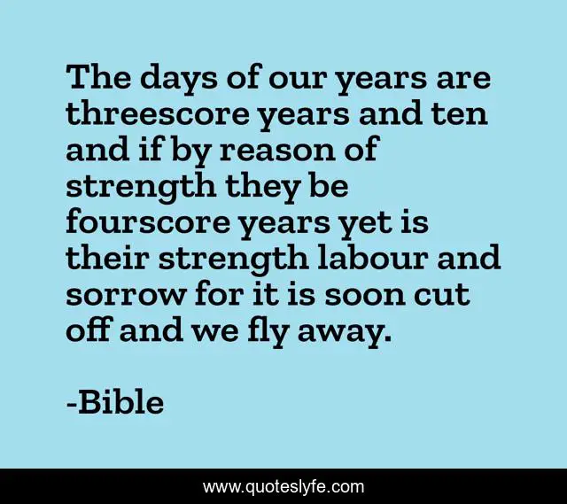 This page presents the quote "The days of our years are threescore years and ten and if by reason of strength they be fourscore years yet is their strength labour and sorrow for it is soon cut off and we fly away.". Author of this quote is Bible. .