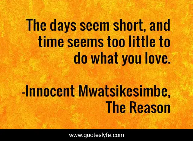 This page presents the quote "The days seem short, and time seems too little to do what you love.". Author of this quote is Innocent Mwatsikesimbe, The Reason. This quote is about work, passion, happiness, success,.