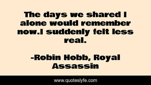This page presents the quote "The days we shared I alone would remember now.I suddenly felt less real.". Author of this quote is Robin Hobb, Royal Assassin. .
