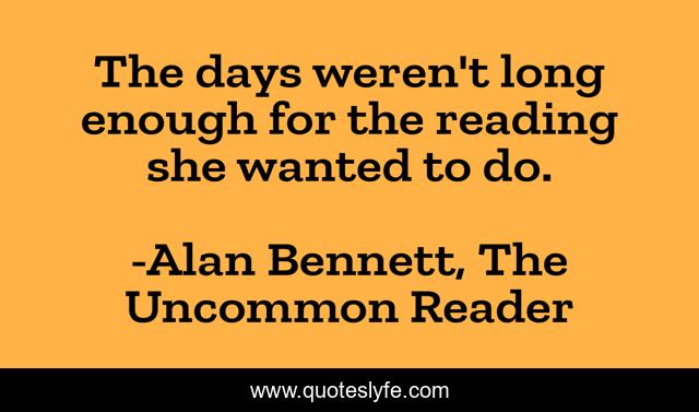 This page presents the quote "The days weren't long enough for the reading she wanted to do.". Author of this quote is Alan Bennett, The Uncommon Reader. This quote is about books, reading, time,.