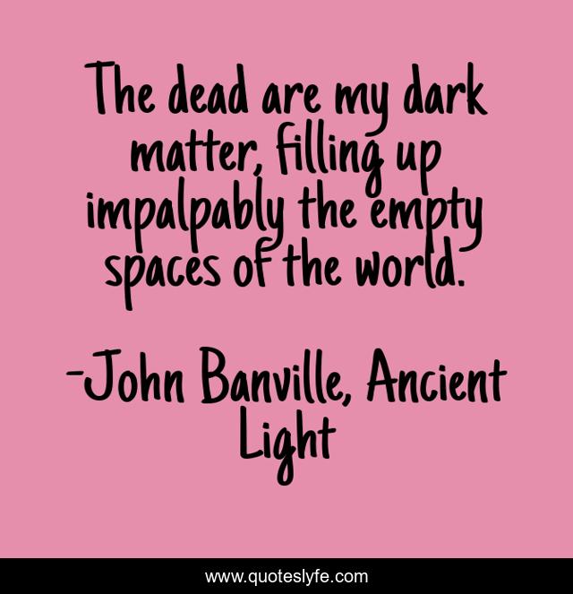 This page presents the quote "The dead are my dark matter, filling up impalpably the empty spaces of the world.". Author of this quote is John Banville, Ancient Light. This quote is about loss, loneliness, death,.