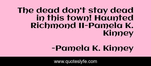 This page presents the quote "The dead don't stay dead in this town! Haunted Richmond II-Pamela K. Kinney". Author of this quote is Pamela K. Kinney. This quote is about ghosts, haunted-richmond-ii, dead, pamela-k-kinney,.