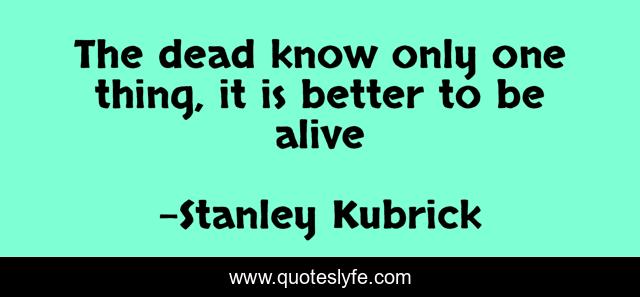 This page presents the quote "The dead know only one thing, it is better to be alive". Author of this quote is Stanley Kubrick. This quote is about life, death, knowledge,.