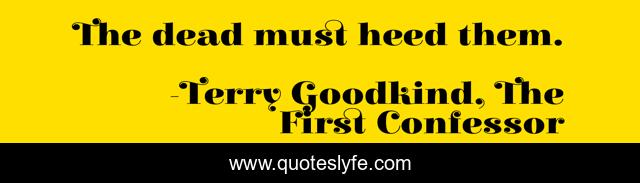 This page presents the quote "The dead must heed them.". Author of this quote is Terry Goodkind, The First Confessor. This quote is about dead, heed,.