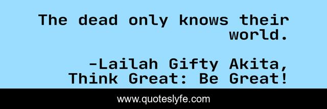 "Lailah Gifty Akita, Think Great: Be Great! Quotes." Quoteslyfe.com, 2025. Sun. 07 Dec. 2025. <https://www.quoteslyfe.com/quote/The-dead-only-knows-their-world-125425>.