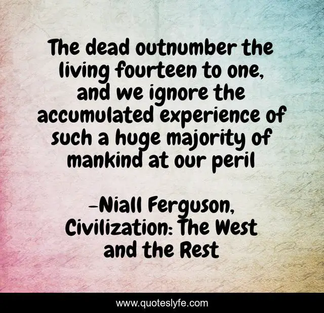 "Niall Ferguson, Civilization: The West and the Rest Quotes." Quoteslyfe.com, 2025. Mon. 08 Dec. 2025. <https://www.quoteslyfe.com/quote/The-dead-outnumber-the-living-fourteen-to-181416>.