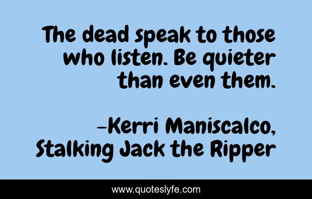 "Kerri Maniscalco, Stalking Jack the Ripper Quotes." Quoteslyfe.com, 2025. Fri. 05 Dec. 2025. <https://www.quoteslyfe.com/quote/The-dead-speak-to-those-who-listen-226539>.