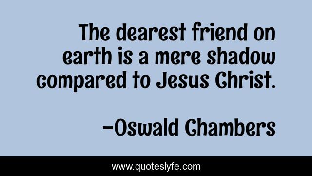 This page presents the quote "The dearest friend on earth is a mere shadow compared to Jesus Christ.". Author of this quote is Oswald Chambers. This quote is about earth, shadow, friend,.
