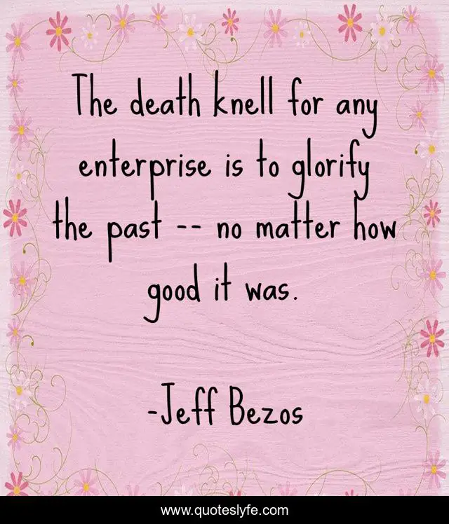This page presents the quote "The death knell for any enterprise is to glorify the past -- no matter how good it was.". Author of this quote is Jeff Bezos. This quote is about history, tradition, risk,.
