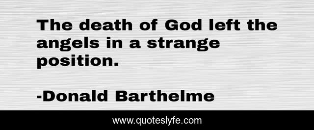 This page presents the quote "The death of God left the angels in a strange position.". Author of this quote is Donald Barthelme. This quote is about religion, modernity, uncertainty, physics,.
