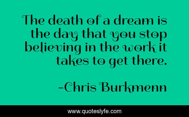 This page presents the quote "The death of a dream is the day that you stop believing in the work it takes to get there.". Author of this quote is Chris Burkmenn. This quote is about motivation, love, inspire, encouragement, jesus, optimistic, confidence, god, positivity,.