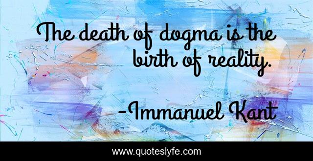 This page presents the quote "The death of dogma is the birth of reality.". Author of this quote is Immanuel Kant. This quote is about positive, confidence, creating, change,.