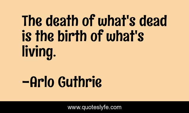 This page presents the quote "The death of what's dead is the birth of what's living.". Author of this quote is Arlo Guthrie. This quote is about living, birth, dead,.