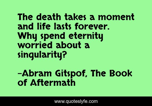 This page presents the quote "The death takes a moment and life lasts forever. Why spend eternity worried about a singularity?". Author of this quote is Abram Gitspof, The Book of Aftermath. .