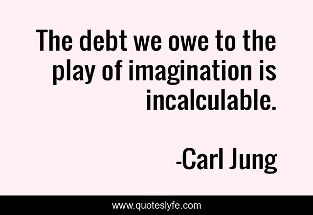 This page presents the quote "The debt we owe to the play of imagination is incalculable.". Author of this quote is Carl Jung. This quote is about owe, play, debt,.
