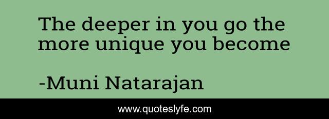 This page presents the quote "The deeper in you go the more unique you become". Author of this quote is Muni Natarajan. This quote is about life, life-lessons, wisdom,.