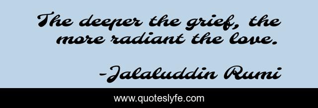 This page presents the quote "The deeper the grief, the more radiant the love.". Author of this quote is Jalaluddin Rumi. This quote is about grief, enthusiasm, love, inspirational, affection,.