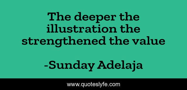 This page presents the quote "The deeper the illustration the strengthened the value". Author of this quote is Sunday Adelaja. This quote is about illustration, strength, deeper, value,.