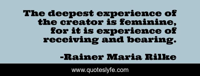 This page presents the quote "The deepest experience of the creator is feminine, for it is experience of receiving and bearing.". Author of this quote is Rainer Maria Rilke. This quote is about feminine, creativity,.