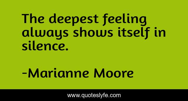 This page presents the quote "The deepest feeling always shows itself in silence.". Author of this quote is Marianne Moore. This quote is about emotion, silence,.