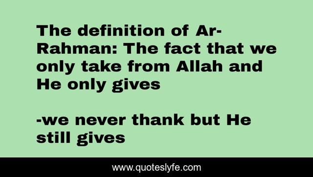 This page presents the quote "The definition of Ar-Rahman: The fact that we only take from Allah and He only gives". Author of this quote is we never thank but He still gives. .