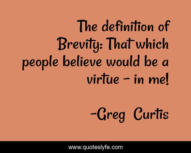 This page presents the quote "The definition of Brevity: That which people believe would be a virtue - in me!". Author of this quote is Greg Curtis. This quote is about brevity, humour,.