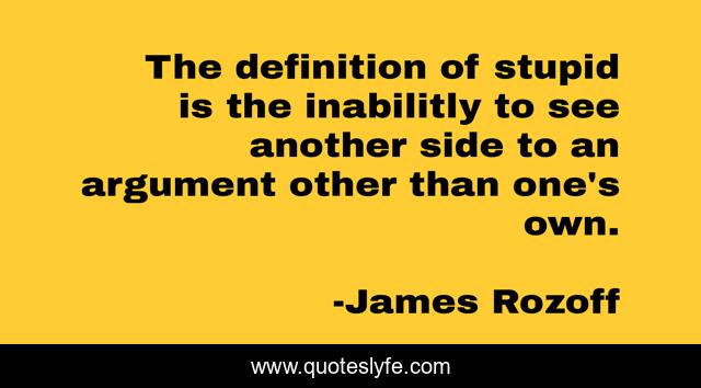 This page presents the quote "The definition of stupid is the inabilitly to see another side to an argument other than one's own.". Author of this quote is James Rozoff. This quote is about stupid, dumb, argument, perspective,.