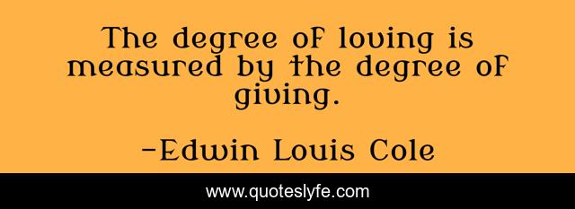 This page presents the quote "The degree of loving is measured by the degree of giving.". Author of this quote is Edwin Louis Cole. This quote is about love, real-love, affection, saying,.