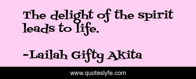 This page presents the quote "The delight of the spirit leads to life.". Author of this quote is Lailah Gifty Akita. This quote is about delightful, christian, life, motivation, spirit,.