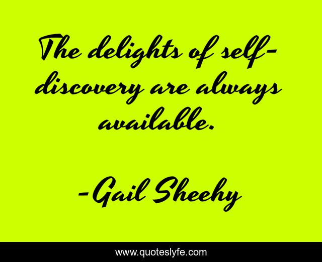This page presents the quote "The delights of self-discovery are always available.". Author of this quote is Gail Sheehy. This quote is about self, knowledge,.
