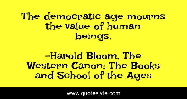"Harold Bloom, The Western Canon: The Books and School of the Ages Quotes." Quoteslyfe.com, 2025. Sun. 07 Dec. 2025. <https://www.quoteslyfe.com/quote/The-democratic-age-mourns-the-value-of-256256>.