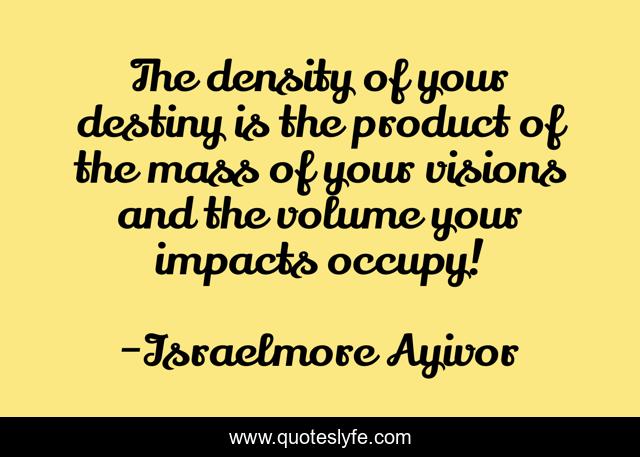 "Israelmore Ayivor Quotes." Quoteslyfe.com, 2025. Sun. 07 Dec. 2025. <https://www.quoteslyfe.com/quote/The-density-of-your-destiny-is-the-107608>.