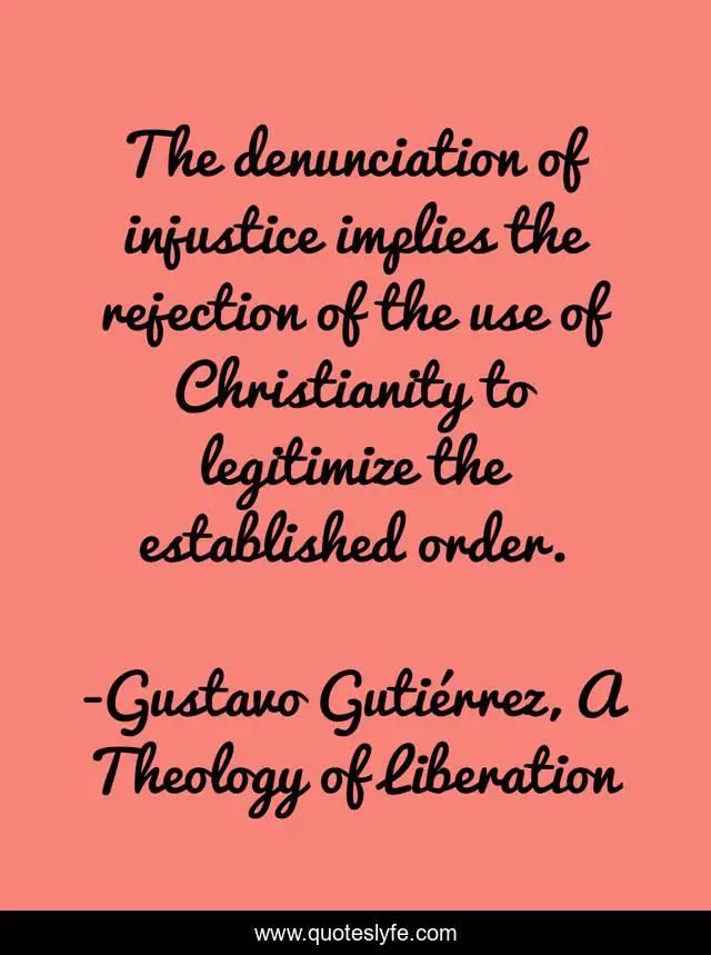 "Gustavo Gutiérrez, A Theology of Liberation Quotes." Quoteslyfe.com, 2025. Sat. 06 Dec. 2025. <https://www.quoteslyfe.com/quote/The-denunciation-of-injustice-implies-the-rejection-54503>.