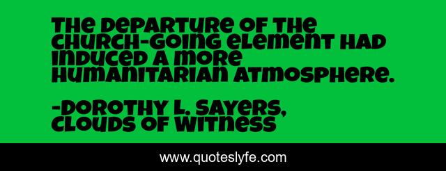 This page presents the quote "The departure of the church-going element had induced a more humanitarian atmosphere.". Author of this quote is Dorothy L. Sayers, Clouds of Witness. This quote is about humanitarian, church,.