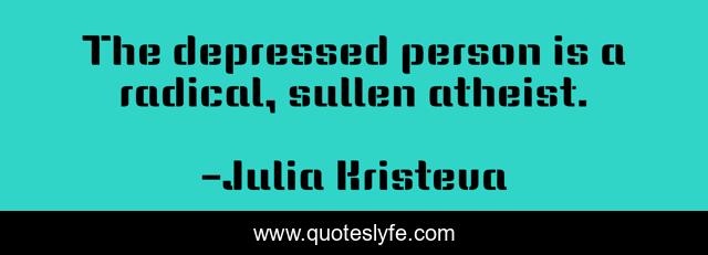 This page presents the quote "The depressed person is a radical, sullen atheist.". Author of this quote is Julia Kristeva. This quote is about atheist, melancholia, depression,.
